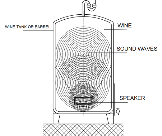 In a second process, it is possible to expose already finished wine stored in barrels to sound in the same way. The effect of the music allows the remaining yeast to be revived and further develop the wine's untapped potential. A second fermentation begins.
